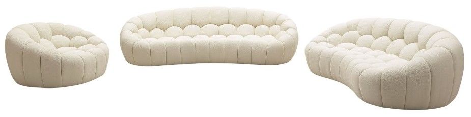 The yolonda living room set includes the sofa, loveseat & chair. The hexagonal tufted cushions provide a unique, non-traditional and stylish design for the sofa as well as the teddy fabric upholstery providing maximum comfort. The pieces in the yolonda living room set can be sold separately.Read More