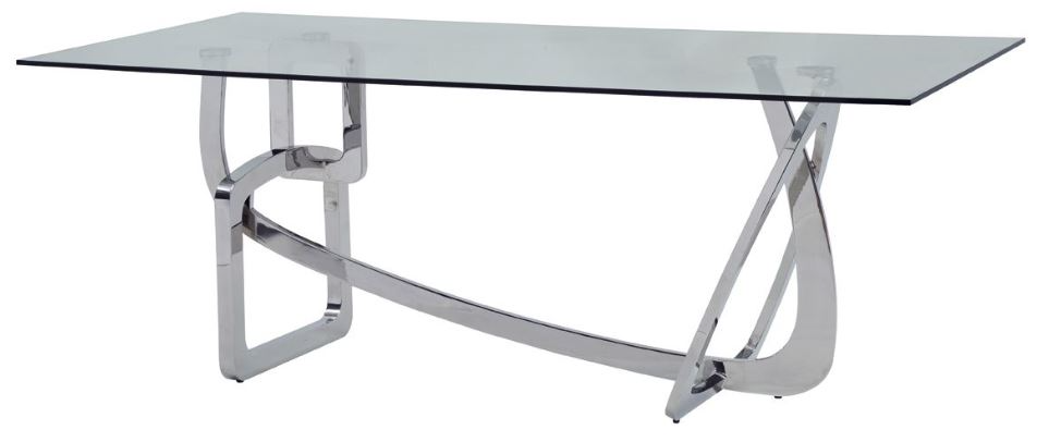 The Modrest Adelaide modern stainless steel and glass dining table is an elegant display of artistry. An eye-catching stainless-steel base with abstract architecture creating a unique and stylish piece. A glass top floats on the top of this enchanting base elevating this to a luxury table.Read More