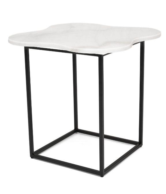The amoebas white stone top of the Aleidy End Table rests upon a stylish black metal frame. This square tube frame is sturdy and stylish. the hard finish of the frame against the soft stone creates a beautiful juxtaposition of contemporary and industrial styles.Read More