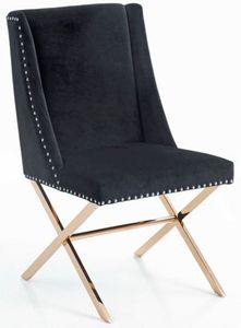 Bring a touch of luxury to your dining room thanks to this beautiful, comfortable chair. The classic colors of black and rose gold add a hint of the exotic that will make any room sparkle. Its lush black velvet seat is well padded.Read More