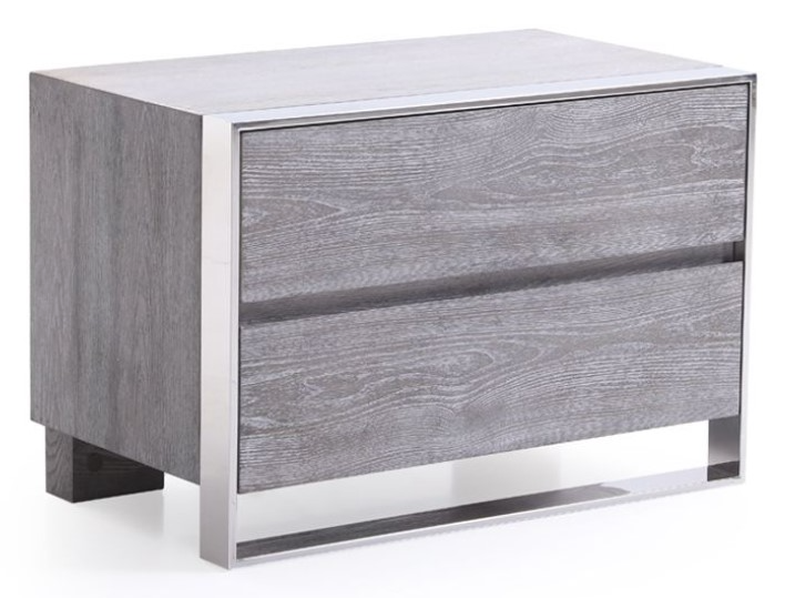 Fitted with 2 soft-closing drawers, the Modrest arlene modern grey elm nightstand is all you need to keep items handy while in bed. A lustrous stainless steel that extends to the floor frames its front and functions as its front legs, giving it an interesting chic appeal.Read More