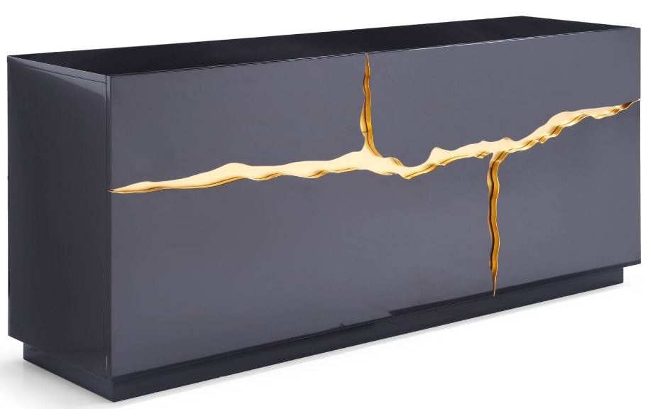 But it is the gold accents, appearing as if they are a tear in the buffet that set this stylish dresser apart. This is a beautiful buffet that adds modern sculpture to your room without sacrificing practicality. The beautiful finish, strong materials and unsurpassed style make this wonderful black and gold buffet an excellent addition to your home.