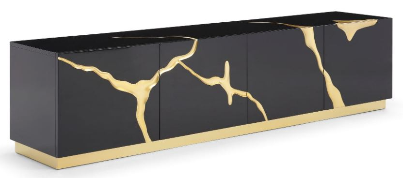The Aspen black and gold TV stand is a gorgeous glam modern piece that is sure to wow all of your guests. Black high gloss finishes the top and sides of this gorgeous piece while peeks of gold painted veins are inset into this finish to create contrast and visual interest.Read More