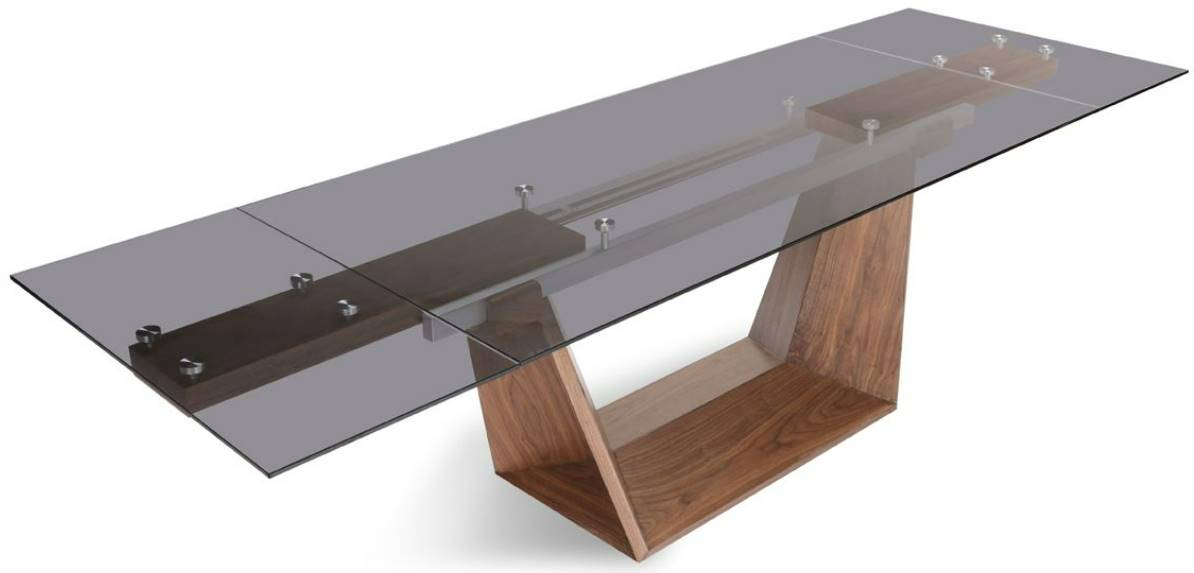 Functionality and aesthetics merged beautifully in the Modrest Babia Modern Smoked Glass & Walnut Extendable Dining Table. The unique angled base design opens up space where you can place magazines, books or even a potted plant.Read More