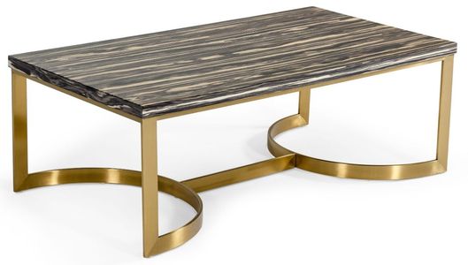 This glam black and gold coffee table feature a faux-marble top. There is a brushed gold stainless steel frame base that is a geometric pattern, which adds layers of style to this gorgeous piece.Read More