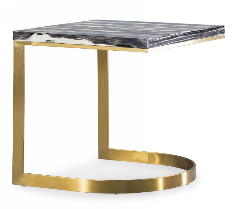 This glam end table features a rectangular black and white faux-marble top. There is a brushed gold stainless steel asymmetrical base, which adds to the unique style of this piece.Read More