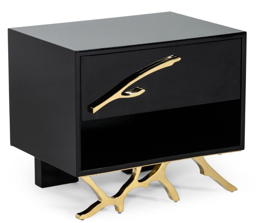 Take a classic design and give it a glam twist and you have the basis for the Legend Nightstand. This high-gloss black nightstand includes one soft-closing drawer with a special twig-shaped handle and an open storage cubby below.Read More