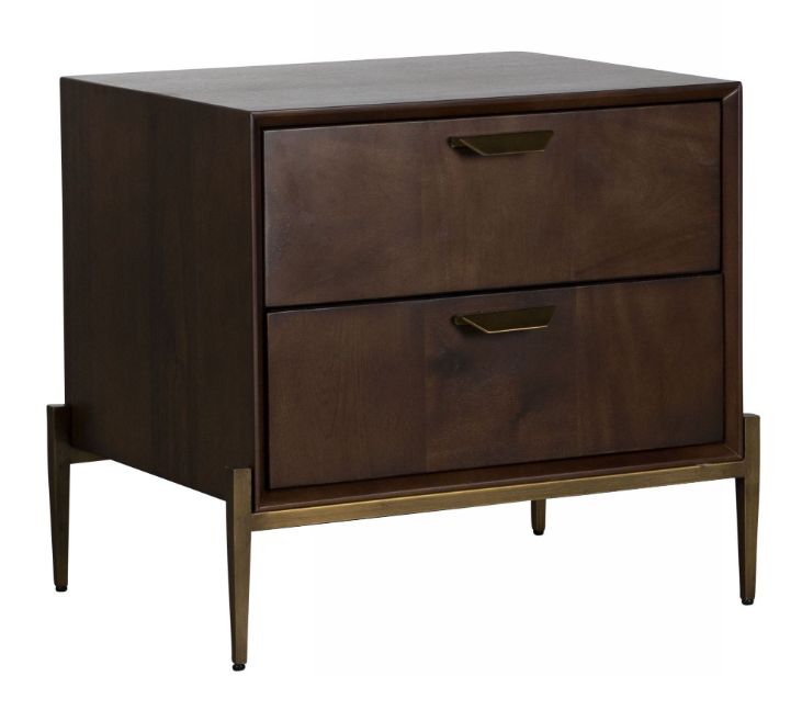 The Shane nightstand is rich and opulent with texture and style, while keeping a sleek and clean lined profile. A subtle Mitered edge checkerboard pattern adorns the drawer fronts, the drawer pulls and spindle legged base are finished in an antique brass, and offer ample bed-side storage.Read More