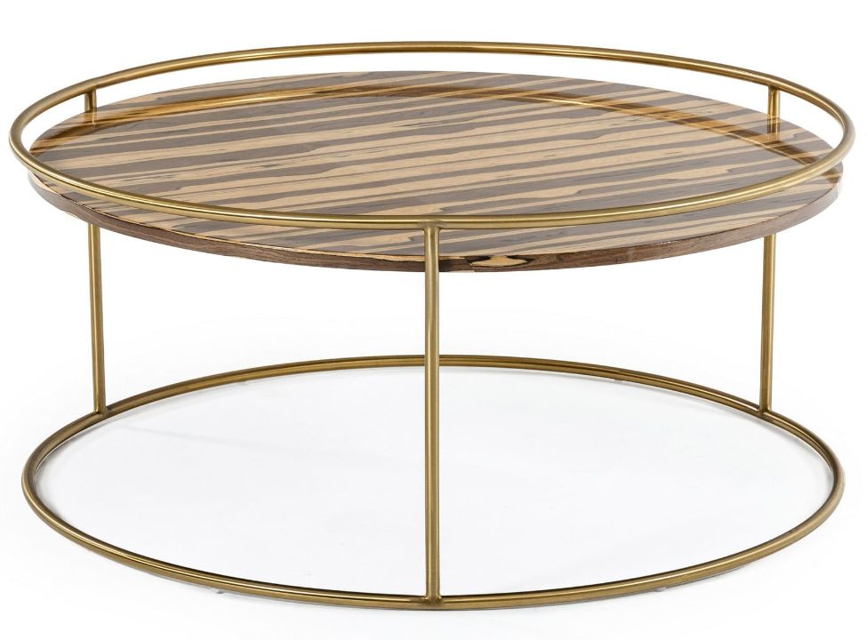 This glam round coffee table features a brown faux-marble top and a brushed gold stainless steel frame base. No assembly is required with this table, and this will fit into your home.Read More