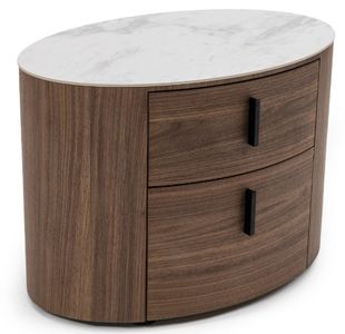 The modrest Chelton nightstand is a gorgeous example of Mid-Century design. The curved walnut veneer pedestal leg extends to the floor, inset from the rest of the nightstand. A white ceramic top with curved edges finishes the top of the piece.Read More