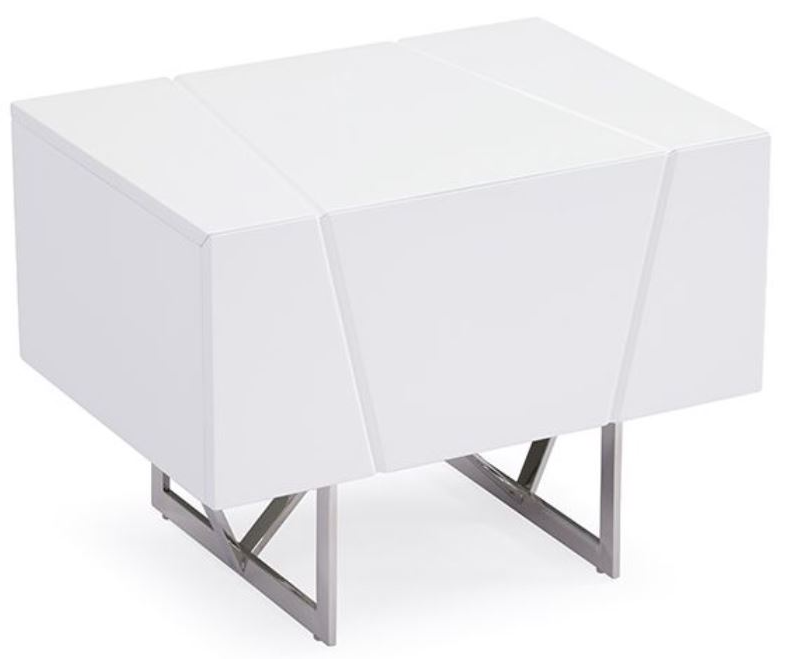 The Chrysler nightstands supports your modern needs in every way. Adding luster to its boxy structure is the suave high gloss finish punctuated with diagonal cutouts. Fitted with a single drawer that glides easily and closes quietly, this nightstand keeps essential items nearby.Read More