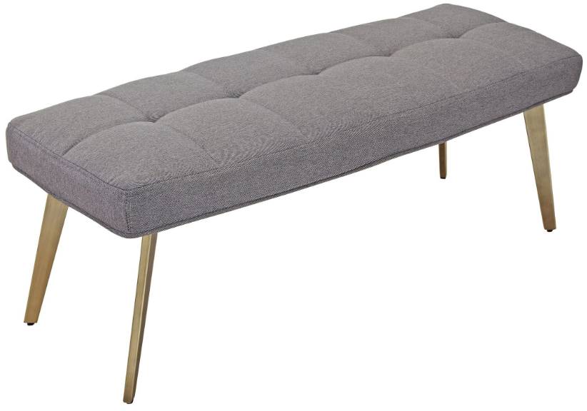 The grey woven fabric of the Cici Bench is contemporary and contrasts beautifully against the glam brushed antique brass tapered legs. Perfect for your entryway, pair it with a multicolored rug, a stylish coat rack, and some woven baskets for your perfectly styled space.Read More