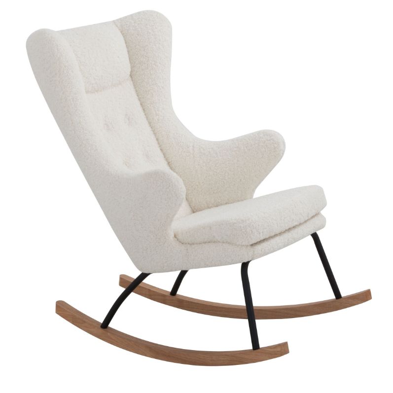 The Colfax Rocking Chair is a beautiful piece for a bedroom or nursery. Upholstered in a gorgeous sherpa fabric with a metal frame and exposed wood rocking feet, this piece adds tons of texture to your space. Pair with the Hamlin Kinds Rocking Chair for a matching child size.Read More