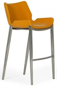 This stunning modern bar stool is sure to turn heads. The dark brushed stainless-steel legs against the light orange vegan leather creates visual interest and texture contrast. The saddle style seat is supportive while reminiscent of a mid-century silhouette. An industrial flare makes this an extremely versatile piece.Read More