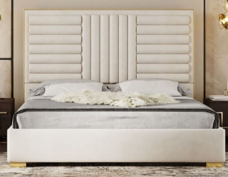 This VIG Furniture Modrest Daystar Beige/Gold Eastern King Bed Upholstered In Beige Velvet Fabric Channel tufting details on Headboard, slats Included. It will be a perfect fit into your house.Read More