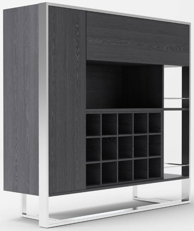 The Fauna Wine Cabinet is set apart by its expert styling. The elm grey finish of the cabinet is partnered by the stainless-steel lines of the frame and base. With a 15-wine bottle capacity, this cabinet is sure to light up your space.Read More