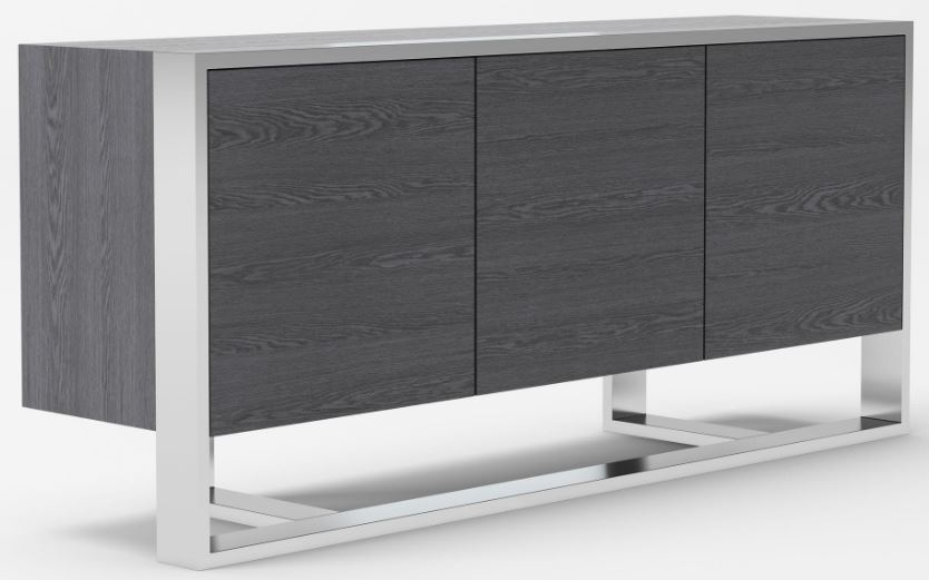 The Fauna buffet is the unrivaled collection of glam and modern. This contemporary buffet has clean stainless-steel lines that accent and surround the gray elm veneer. Three soft close doors reveal adjustable interior shelves that can hold any number of dining essentials.Read More