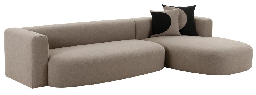 The rounded cushions make for an alluring resting place, especially with the included chaise lounge. Two accent pillows accentuate the neutral color scheme and provide added comfort. A perfect contemporary choice for a harmonious home.