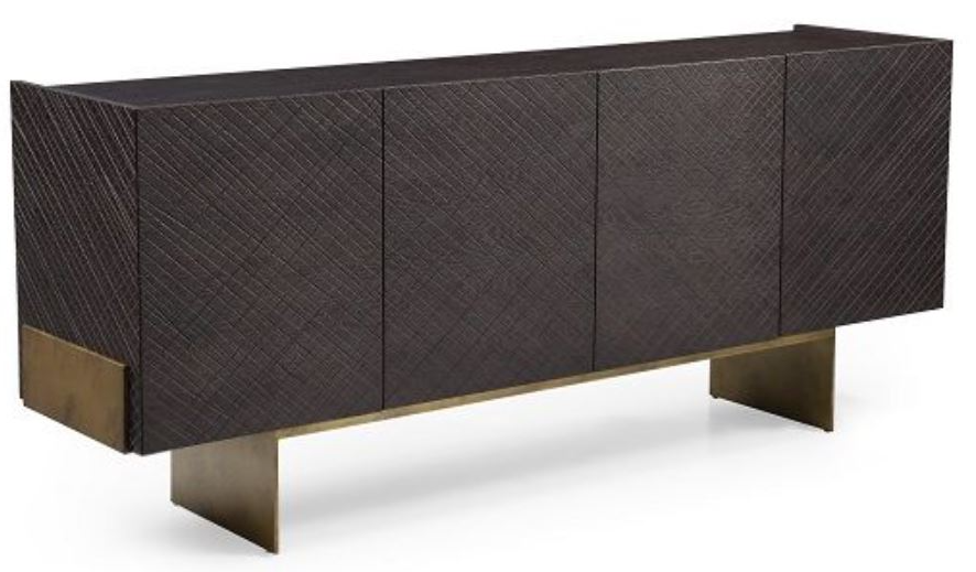 Introducing our exquisite Gerald buffet, a prime display of creative design and workmanship. The antique copper metal base adds a sophisticated touch of warm to modern ash brown wood finish. With its diagonal textured doors, it provides an inspired blend of contemporary and rustic style.Read More