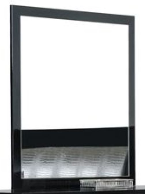 The Modrest Grace Italian modern black mirror features a sleek black gloss and black crocodile textured eco-leather frame giving it a luxurious look. Stainless steel accents offer an interesting contrast. Made in Italy, this mirror has a dimension of W39" x D1" x H41". The dresser in the photo is available separately.Read More