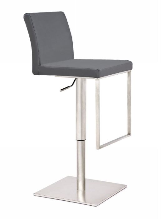 The Folsum Bar stool is simple and contemporary, sleek and chic. The dark grey leatherette uoholstery is beautifully harmonized with the chrome base and footrest. The seat swivels, and the pneumatic lift mechanism is controlled by a lever below the seat, that allows for height adjustability.Read More