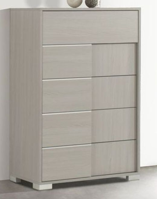 The Modrest Ethan Italian Modern Grey Chest features clean lines and wood grain patterns in grey Veneer finish. Fitted with 5 drawers for ample storage, the 4 drawers feature a raised right front design with the top drawer adapting the regular drawer design.Read More