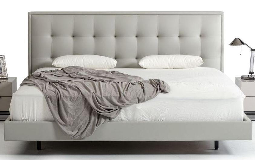 The Modrest Hera modern grey leatherette bed is a showcase of elegance and charisma, featuring a low to the ground design and a tufted headboard. Upholstered in grey leatherette, it stands on tapered wood legs. This modern leatherette bed is available in Queen and Eastern King size.Read More