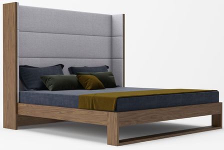 The grand headboard and clean lines of the Heloise Bed are built to invite in a deep sleeper. The elegant twill upholstery wraps around the wingback headboard with channel tufting that engulfs you in modern luxury. Walnut veneer panels finish the look of the bed to create a mid-century styling.Read More