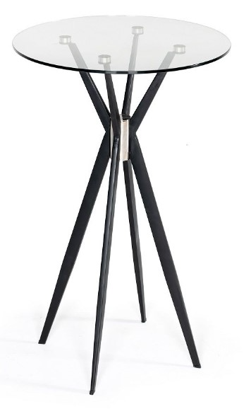 The Kaitlyn bar table features a 10mm clear glass top, centered over a crisscrossed black powder coated metal base, that is held together by a brucshed stainless steel cylinder at the legs intersecting point. The bar table is versatile in style, and can fit in with many interiors that are contemporary, modern.Read More