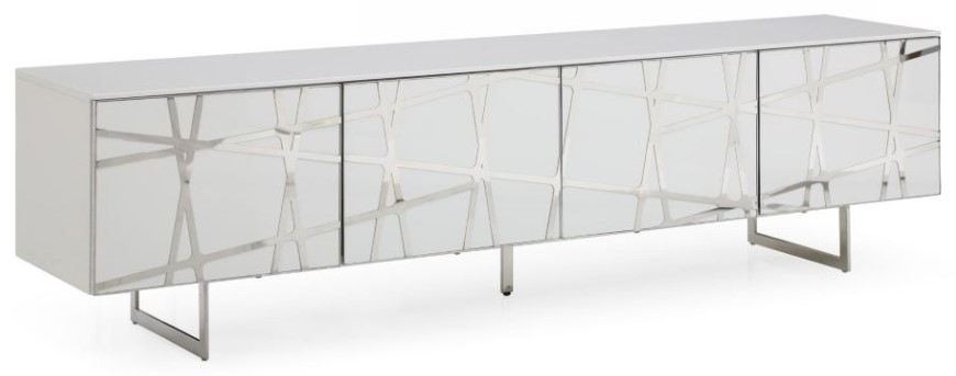 The Kilson tv stand is a white high gloss tv stand with polished stainless steel accents. The geometric pattern makes it perfect for a mod or mid-century style room. The finished add class to a modern style and the construction is sturdy.Read More