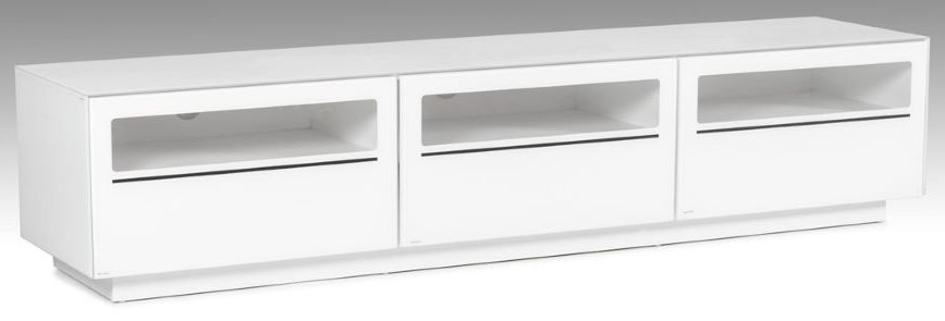 The Modrest landon contemporary white tv stand features a dazzling white high gloss lacquer finish and white tempered glass. Sufficient storage space is provided by the 3 drawers with shelves, while the 3 electrical wire holes at the back prevent wire clutter.Read More