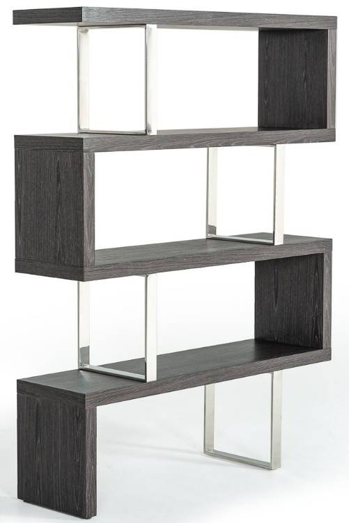 A great storage solution, the Modrest maze modern grey elm bookcase features a 3-level open shelf in lustrous grey elm veneer that creates modern lines. Durable stainless steel supports hold the shelves in their perfectly 'off-balance' positions.Read More