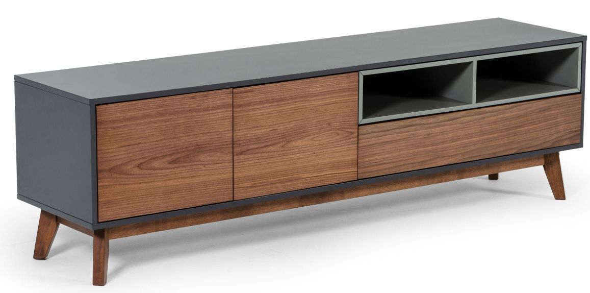 Bring some visual counterpoint to your home theater space with the Lillian TV Stand. The usual Lillian suspects are still in play here: walnut veneer, walnut finished solid wood, charcoal grey, and some light grey finishes.Read More