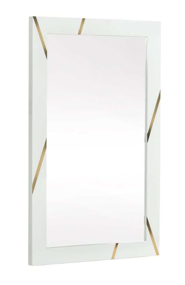 The nixa mirror is a white high gloss mirror that can attach to our nixa dresser. The white frame is adorned with delicate gold painted accents in architectural modern lines. Perfect for a glam or modern home.Read More