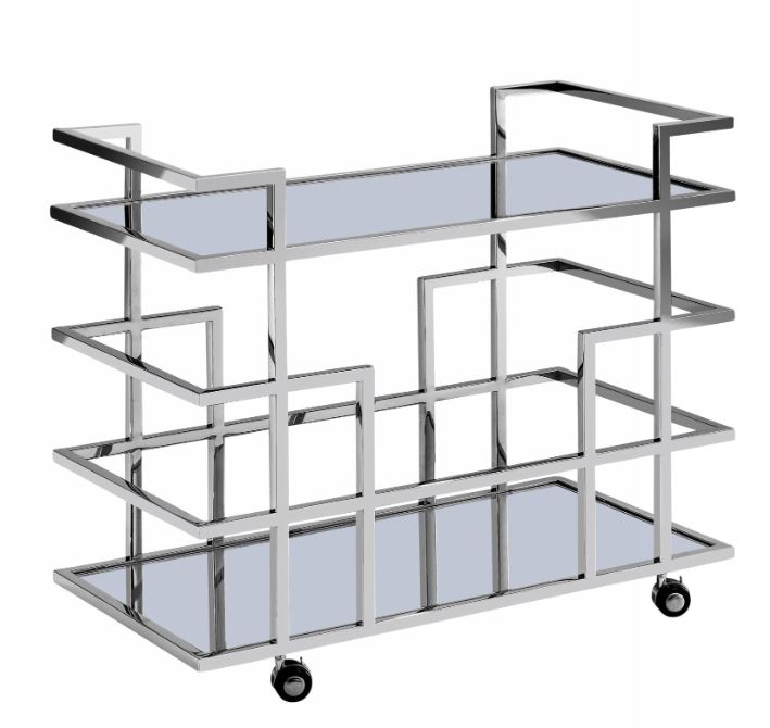 The Caleb polished stainless steel Bar cart is a shiny and shimmery addition to your Dining room, living room or office. The linear gold frame is inspired by art deco style, but is streamlined to also fit in with a more contemporary environment.Read More