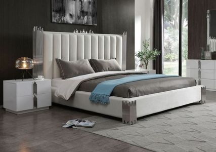 Merging royal elegance with a modern touch, the Modrest Token Modern White and Stainless Steel Bedroom Set has a spacious bed with a sunken frame. The tall headboard has vertical ridges in stainless steel, making you feel like royalty.Read More