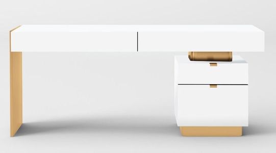 The Trahan desk is a beautiful, contemporary piece that anchors any room. The white gloss white finish of the cabinets and top contrasts effortlessly with the bright brushed gold stainless steel metal frame. Four soft closing drawers provide a plethora of storage options in this glam desk.Read More