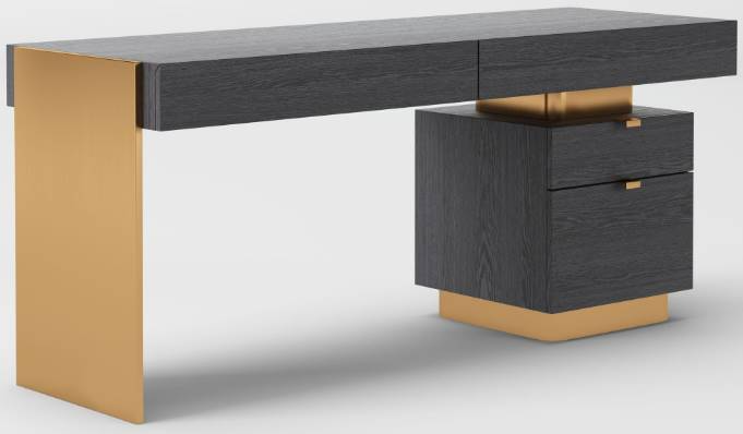 Peninsula writing desk with gold metal connector