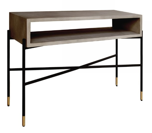 Design your home in a cool fashion with the Modrest Walker modern concrete and metal console table. Donning an open shelf grey concrete top perched on a sleek black brushed metal base, this console greets your guests with poise. Offering space to keep curios, a stunning vase or abstract sculpture.Read More