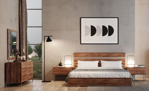 Sporting a near to the ground look, the nova domus lorenzo Italian modern light oak bedroom set is offered in a matte light oak veneer finish. This set includes a sunken slatted framed bed, 2 nightstands, a dresser, and a mirror.Read More
