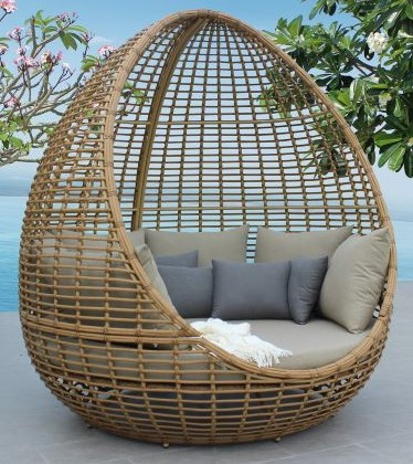 Relax under the sun in style and comfort! The revana cocoon outdoor beige + wicker lounge bed features beige water repellant fabric cushions and grey pillows that create a cozy cabana experience in one’s backyard.Read More