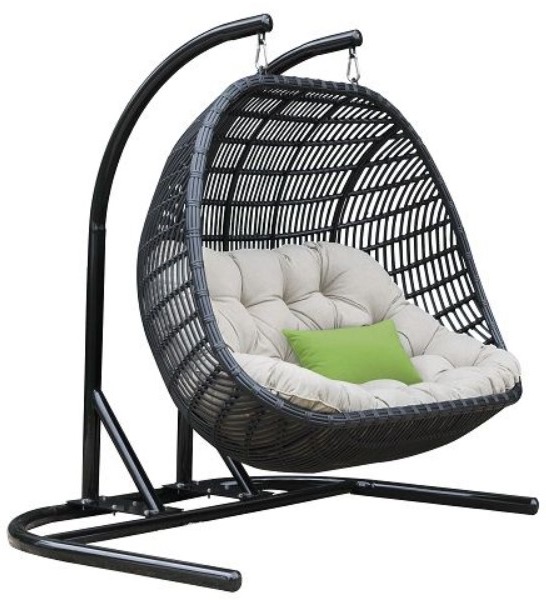 This huge Renava San Juan Outdoor Black and Beige Hanging Chair offers you a one-of-a-kind experience. Not only can you sit on it, you can also lie down on it. Featuring an aluminum frame wrapped in a sleek black poly bamboo rattan basket seat,Read More